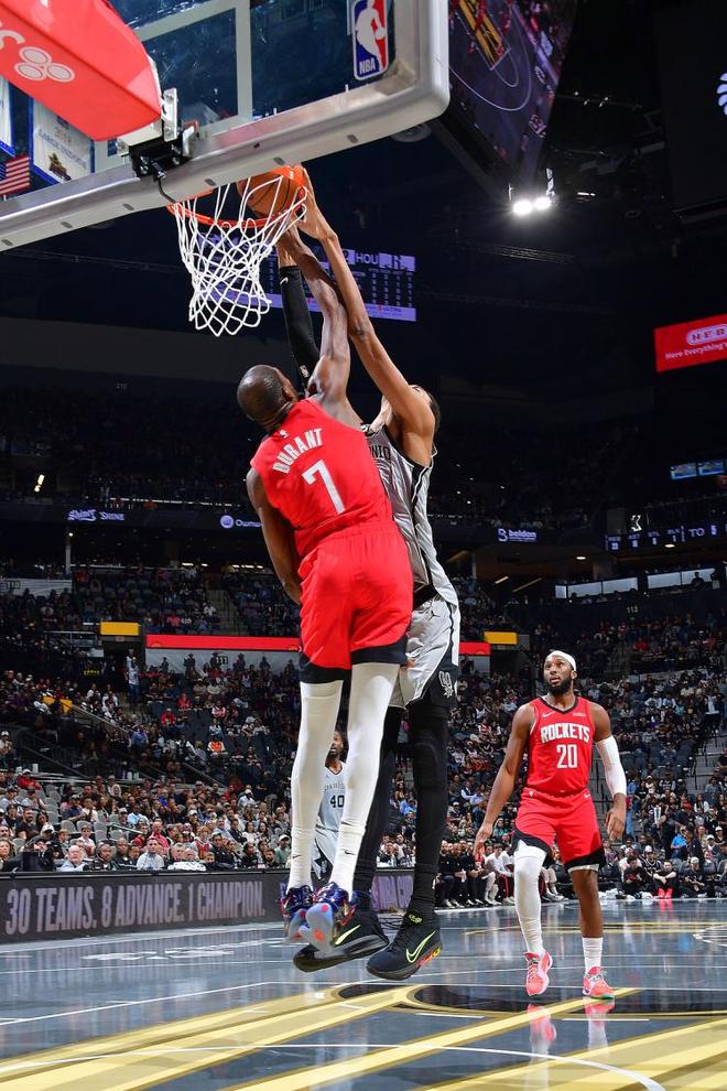 而反过来,马刺全场包夹杜兰特和申京,让火箭打得非常难受,马刺考验杜兰特的出球能力,欺负火箭没有纯正的控卫,杜兰特全场出现8次失误,暴露出火箭传接球和出球的巨大问题,申京被打得心态都出现问题,而面对马刺非常强悍的内线防守威慑力,阿门打不出特点和内容,促使火箭进攻发起的三巨头,各大的短板和问题都暴露无遗。